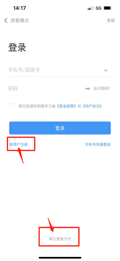 Step2:新用户点击左下角新用户注册,老用户选择其他登录方式。