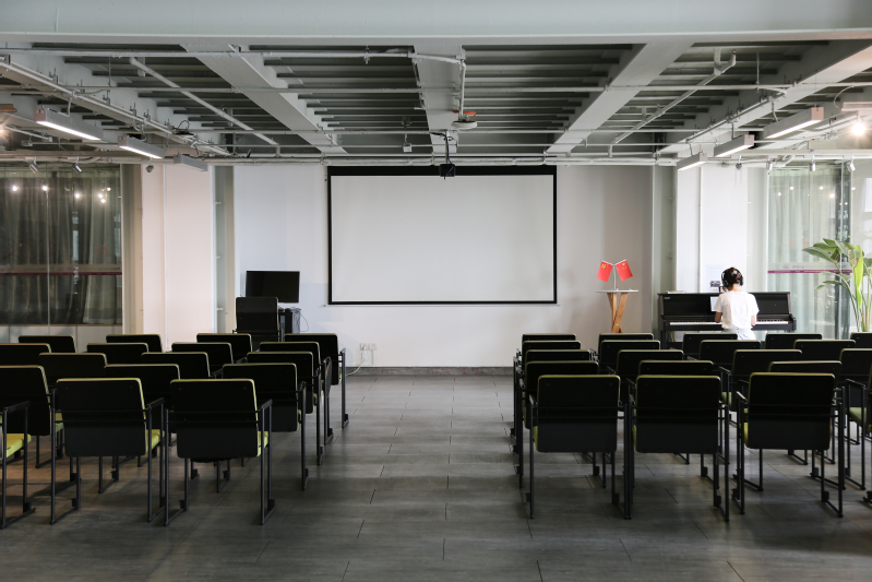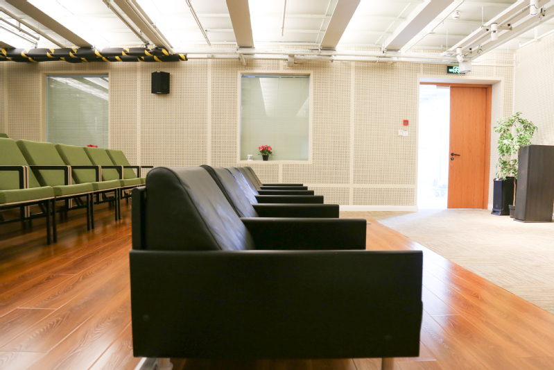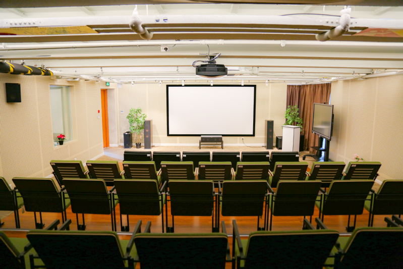 学术报告厅:内部配有高亮度投影仪、一体机、音响等设备。空间最大可同时容纳约100人,可用于视频会议、培训会、讲座、研讨会、座谈会等。
